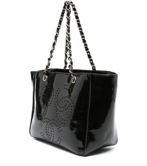 Chanel Perforated CC Logo Patent Leather Chain Handle Tote