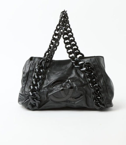 We guarantee this is an authentic Chanel Calfskin Rhodoid Modern Chain East West Tote bag full money back. This product is in Great condition No du...