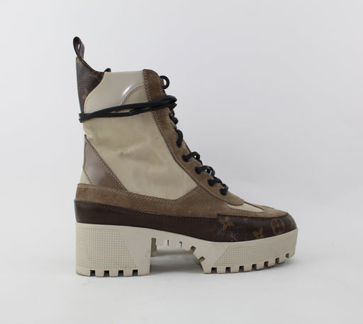 We guarantee this is an authentic LOUIS VUITTON LAUREATE PLATFORM DESERT BOOT SIZE 38 or full money back. This Product is in Great condition with d...