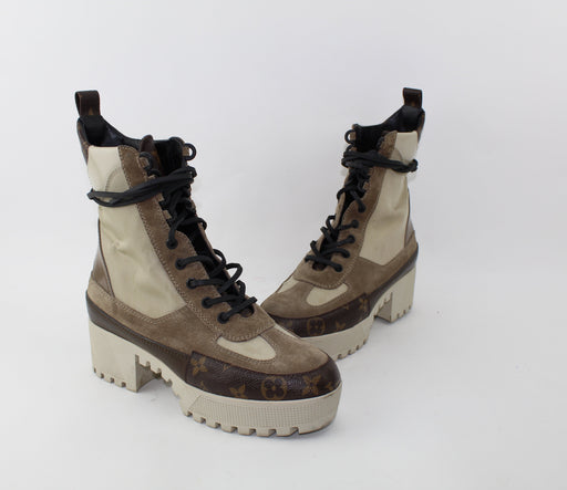 We guarantee this is an authentic LOUIS VUITTON LAUREATE PLATFORM DESERT BOOT Size 39 or full money back. This Product is in Like New/Worn once ...
