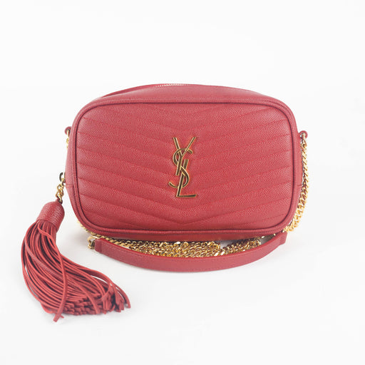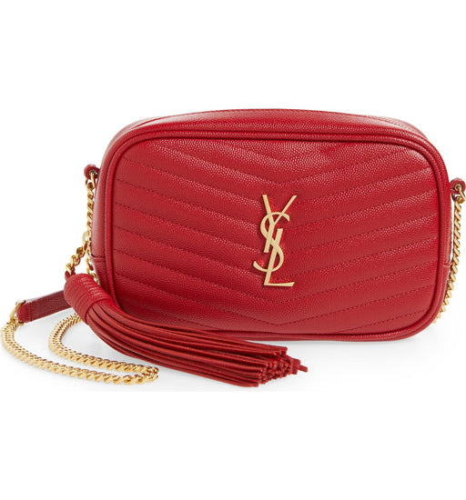 We guarantee this is an authentic Saint Laurent Mini Lou Quilted Leather Crossbody Bag in red or full money back. This product is in excellent cond...
