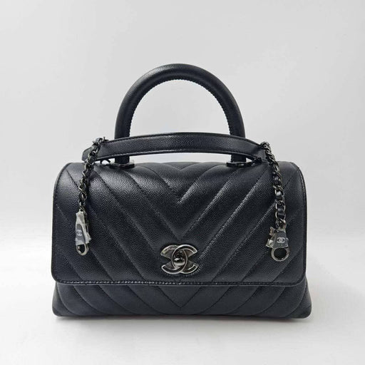 Chanel Chevron Small Caviar Coco Top Handle Flap bag