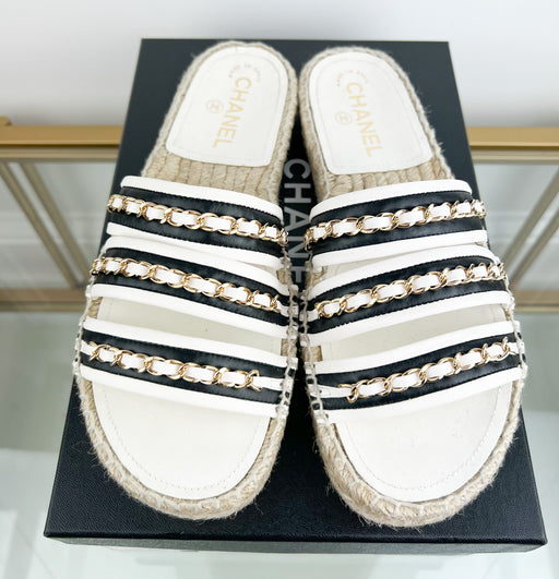 Original price $475.00 - Original price $475.00Original price$475.00$475.00 - $475.00Current price $475.00| /CHANEL CANVAS CHAIN FLAT SANDALS SIZE 38