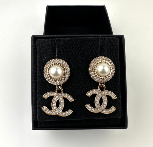Original price $550.00 - Original price $550.00Original price$550.00$550.00 - $550.00Current price $550.00| /Chanel Pearl and Crystal CC Drop Earrings in Gold