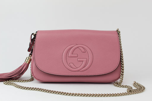 We guarantee this is an authentic Gucci Soho Chain medium crossbody bag in pink or full money back. This Product is in Brand New Condition with Dus...