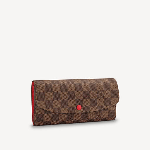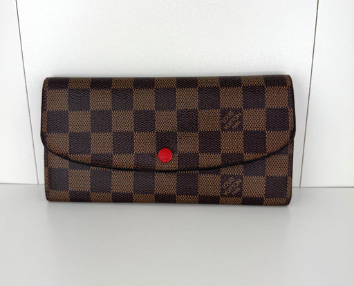 We guarantee this is an authentic Louis Vuitton Emilie Wallet in damier and red or full money back. This product is in Excellent with dust bag and...