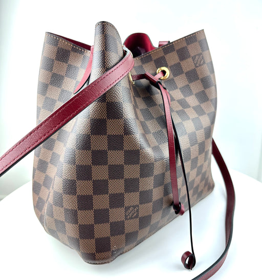 We guarantee this is an authentic Louis Vuitton NeoNoe Damier Bag with a red drawstring or full money back. This product is in great condition wit...