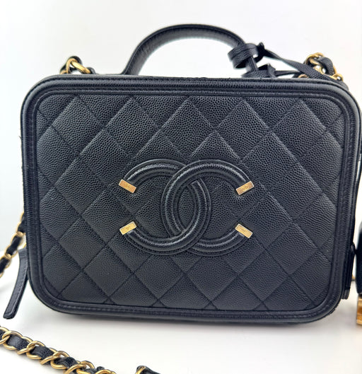 We guarantee this is an authentic Chanel Chevron Small Caviar Coco Top Handle Flap bag or full money back. This product is Excellent condition wi...