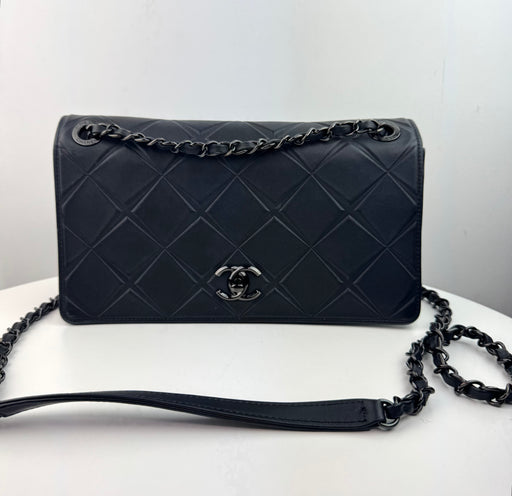 We guarantee this is an authentic Chanel Calfskin Small Propeller Flap Black full money back. This product is in Great condition with dustbag and b...
