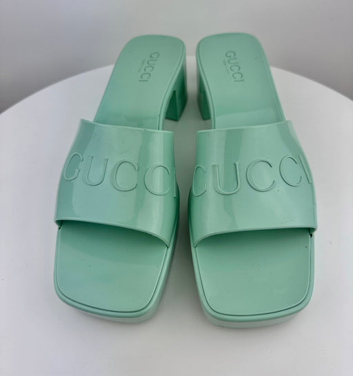 We guarantee this is an authentic Gucci Rubber Slide Sandal in Mint Green size 39 or full money back. This Product is in Great condition with Dust...