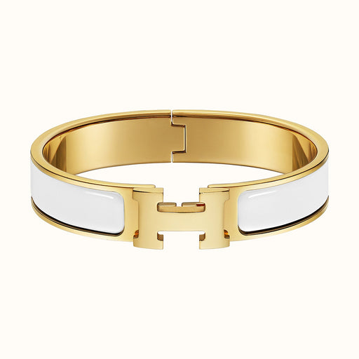 Hermes Clic H Bracelet in White with Gold Hardware pm