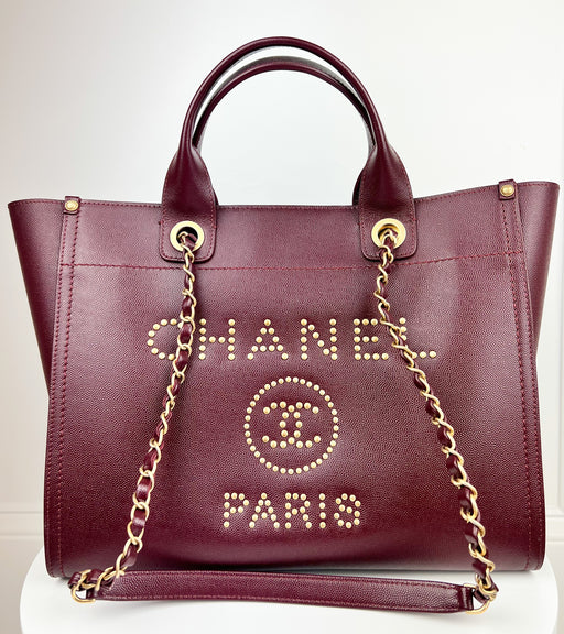 Chanel Studded Burgundy Caviar Leather Deauville Tote