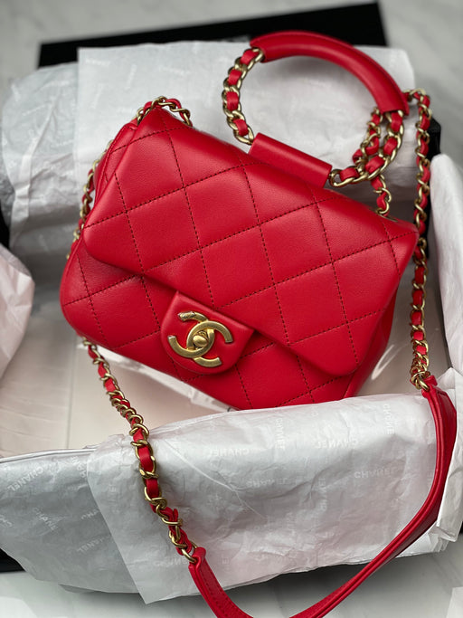 We guarantee this is an authentic Chanel Top Handle Flap Bag in red or full money back. This product is brand new with dust bag and authenticity c...