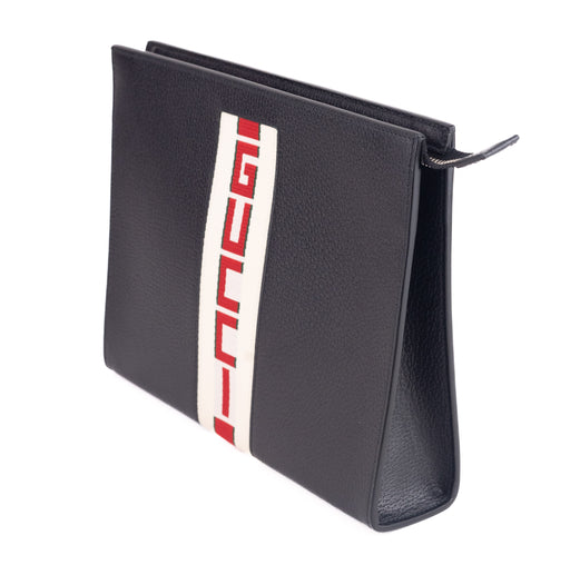 Gucci Logo Stripe Leather Pouch
