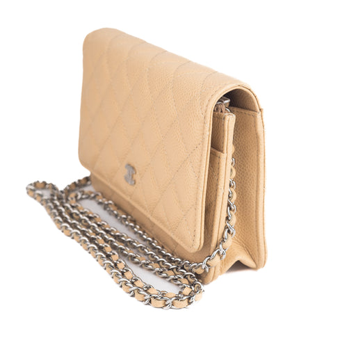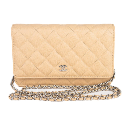 We guarantee this is an authentic Chanel Classic Wallet on Chain Beige with Silver hardware or full money back. This product is brand new with dus...