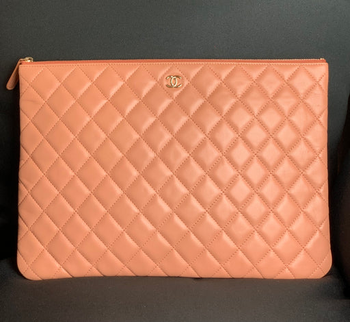 We guarantee this is an authentic Chanel Classic Large O-Case Pouch in blush or full money back. This product is like new with dust bag, and authe...