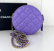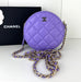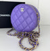 Caviar Quilted Round Clutch With Chain Purple