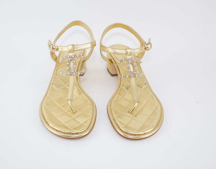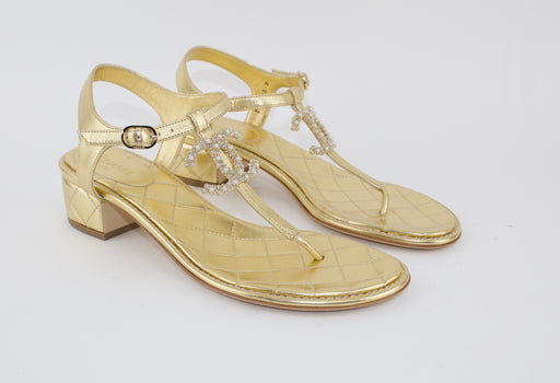 CHANEL LAMBSKIN APPLIQUE THONG SANDALS