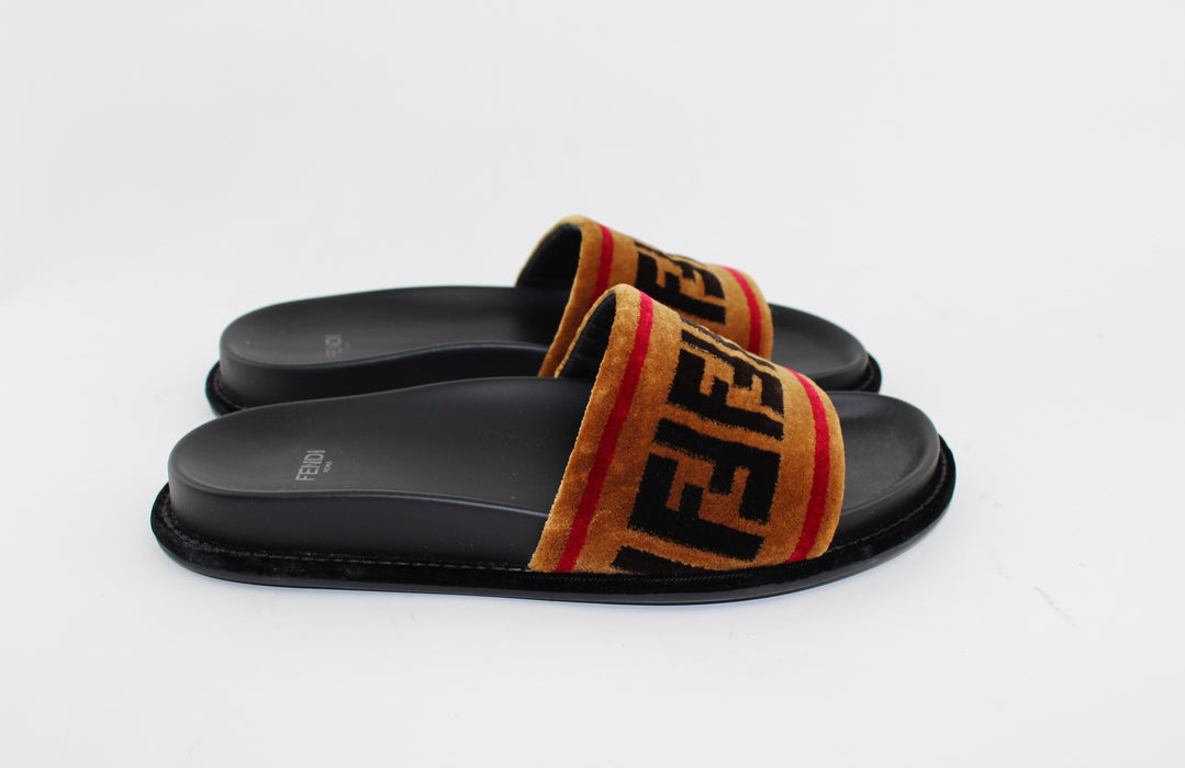 We guarantee this is an authentic FENDI FF MOTIF BAND SLIDES SIZE 39 or full money back. This Product is in Excellent Condition condition with Dust Bag Only ( Normal signs of wear small scuff on inside of slide  PLEASE REFER TO PHOTOS)