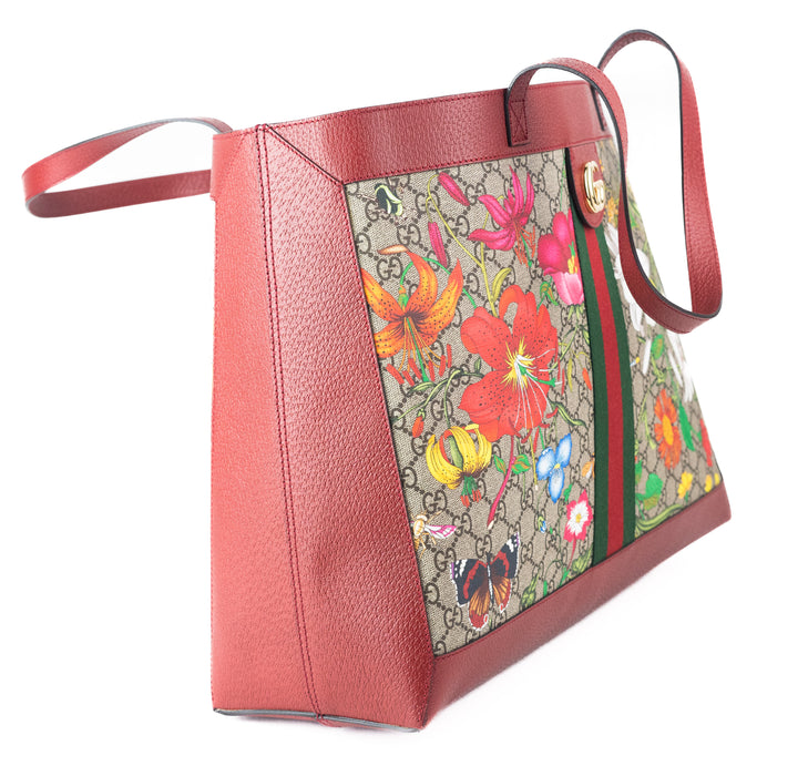 Gucci GG Supreme Large Flora Canvas Web Ophidia Tote