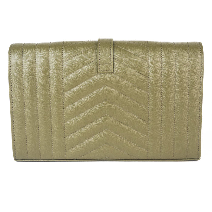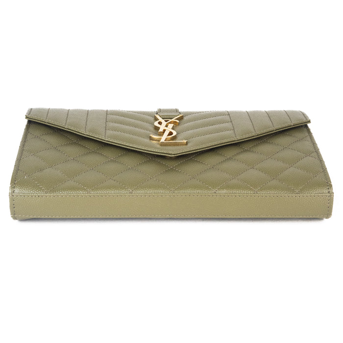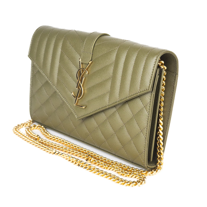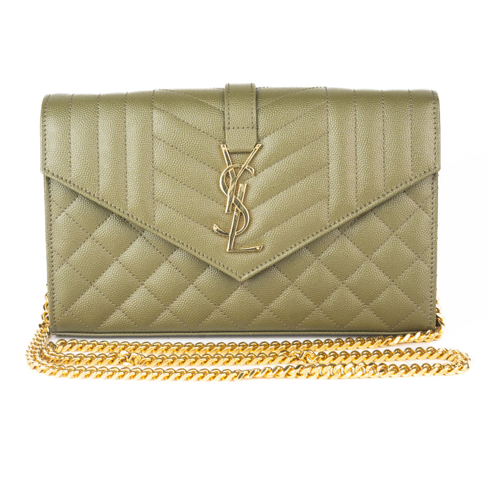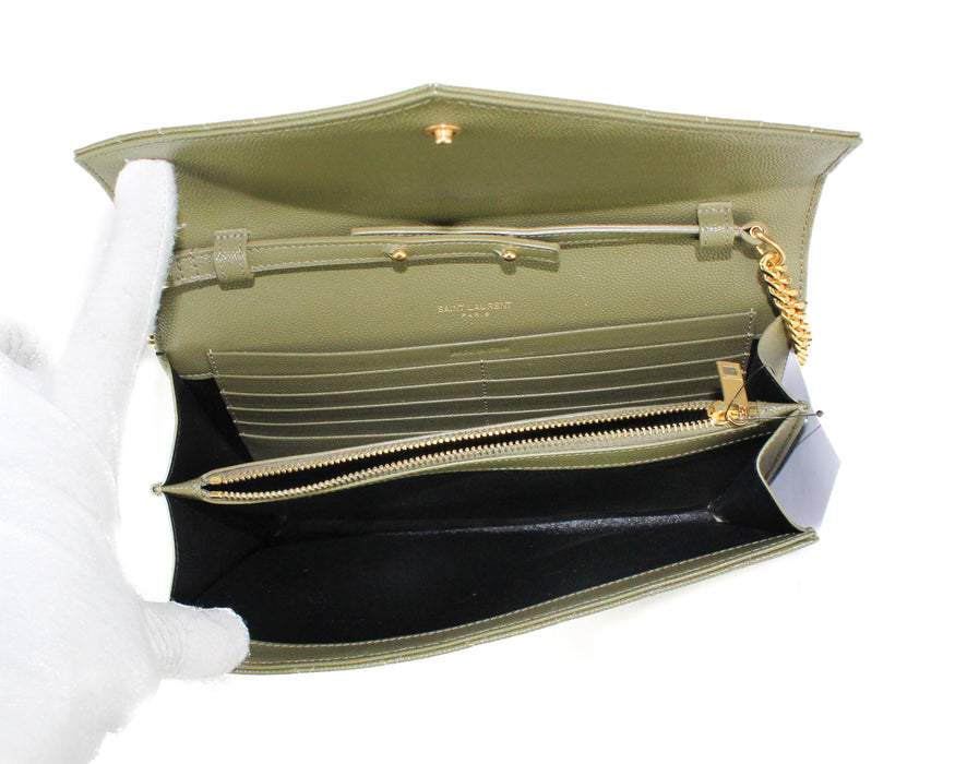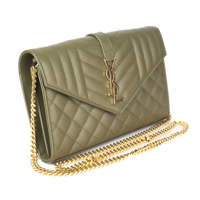 Saint Laurent Monogram Chain Wallet in Vert Kaki Mix Matelasse